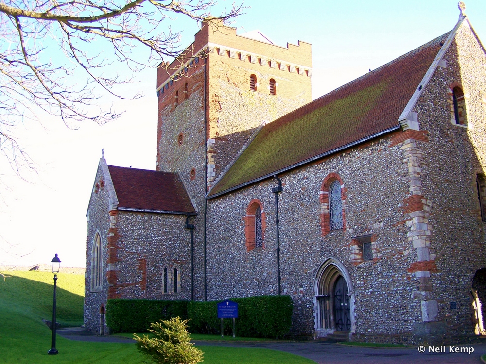 Dover’s medieval fortress was built on the site of an Iron Age hill fort which had existed there many centuries before. After AD 43 it was occupied by the Romans and a Roman lighthouse is still contained within the castle’s walls. Next to this lighthouse stands an Anglo-Saxon church dating from around the year 1000, which although heavily restored during the 19th century, still retains many original features and is the largest and finest Saxon building in Kent.